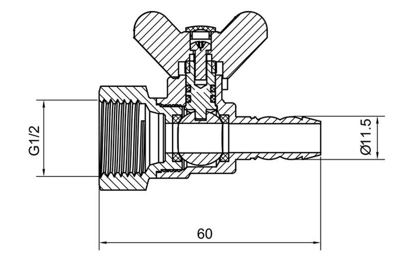 Латунный шаровой кран YH-216 с ручкой-бабочкой (соединитель для шланга)