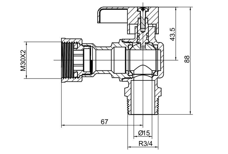 YH-215 Латунный прямоугольный шаровой кран (F/M)